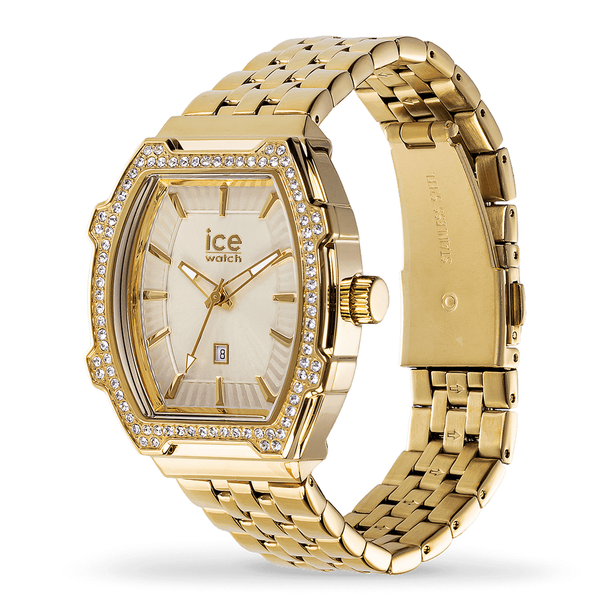 Verlieben Sie sich in die ICE boliday - Almond stones, eine Uhr mit einem Jubiläumsarmband aus goldfarbenem Edelstahl.