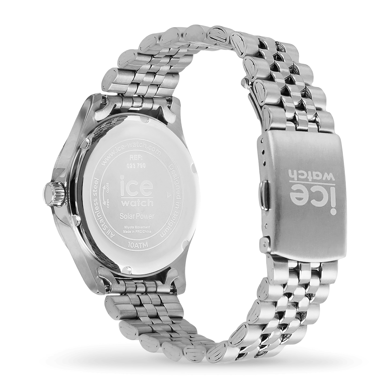 Entdecken Sie die Uhr ICE steel solar power - Silver light pink, die die Eleganz von Silber und einen diskreten femininen Touch verkörpert. Mit einem Gehäuse und Armband aus Silber zeichnet sich dieses Modell durch ein rosafarbenes Zifferblatt aus, das eine subtile und raffinierte Farbnote hinzufügt. Perfekt für einen femininen und anspruchsvollen Look, lädt sich diese Solaruhr durch natürliches oder künstliches Licht auf und sorgt so für eine lang anhaltende Autonomie.