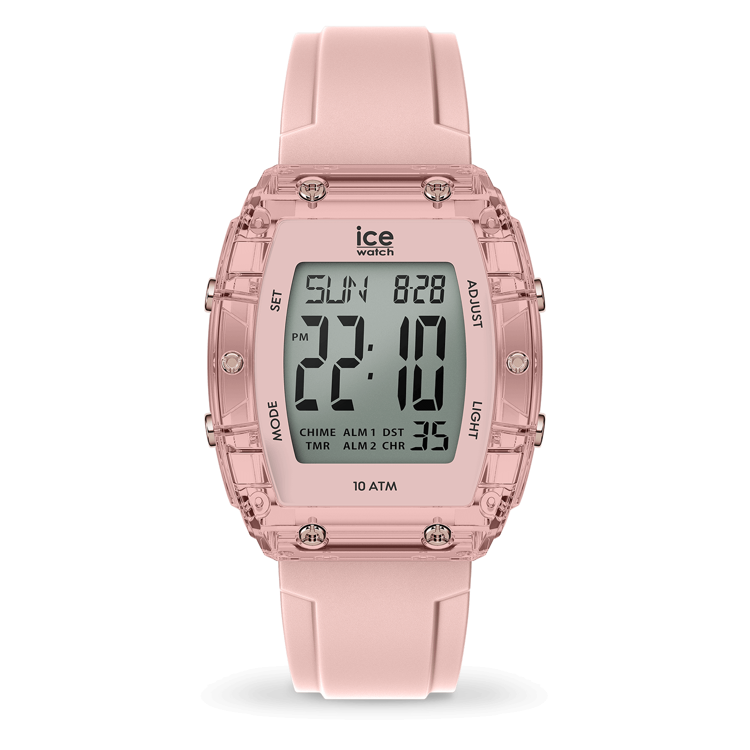 Adopt a sleek, futuristic style with the ICE digit boliday - Nude Rose-gold. Its retro-futuristic design features a nude silicone strap combined with a transparent case with rose-gold accents. This digital watch is not just a watch, but an accessory that combines modernity and sophistication. Its digital display provides a clear and practical readout of the time and date. Water-resistant to 10 ATM, it's the perfect companion for every day, from morning to night.