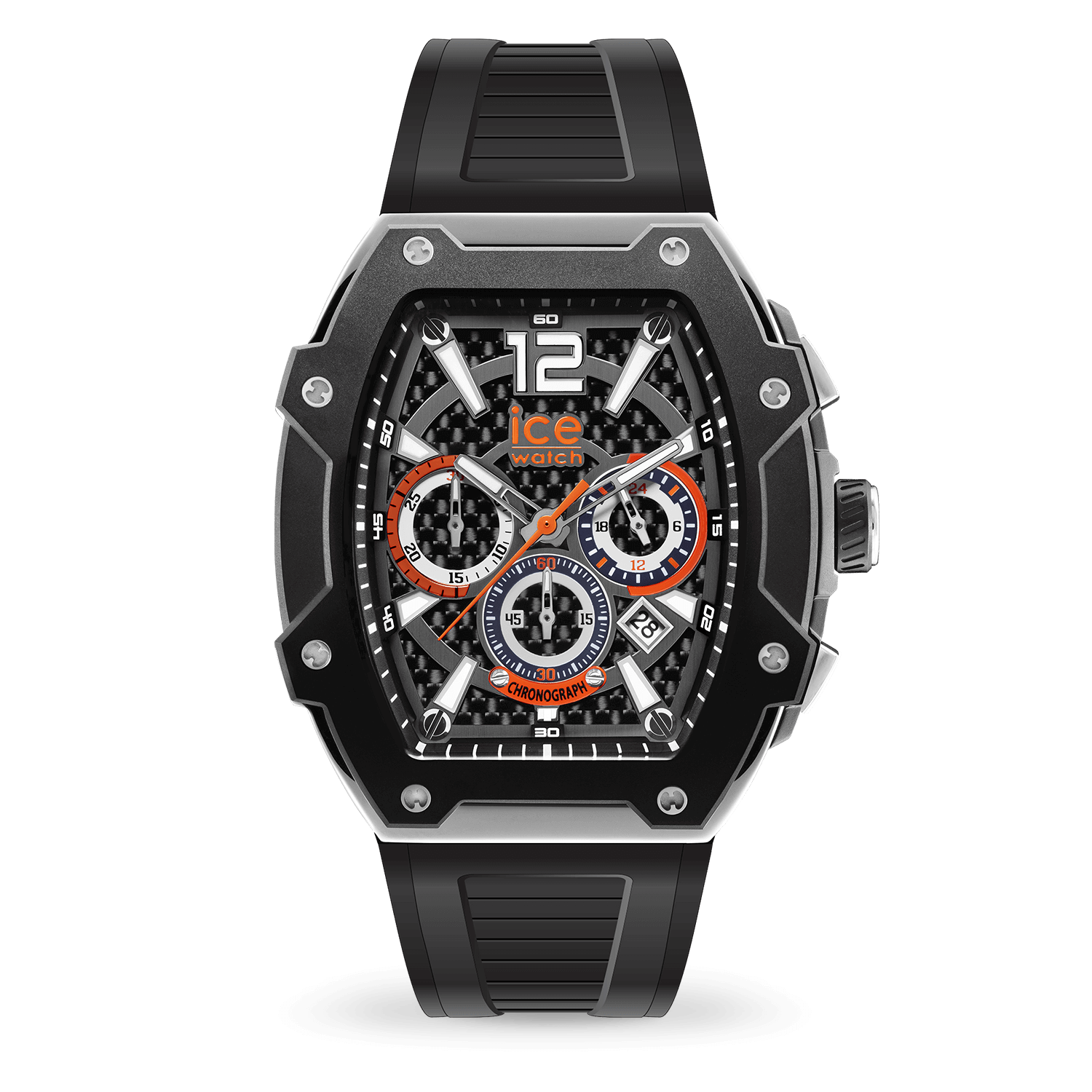 Immerse yourself in the heart of fine watchmaking with the ICE boliday - Black silver steel. Shaded with intense blacks and grays, its carbon fiber dial offers an almost psychadelic dimension to the watch. It reveals a precision chronograph movement, where each cog is exposed in a subtle play of reflections and light. The black silicone strap completes this model for a modern, sporty and refined look. Waterproof to 10 ATM, this watch will accompany you everywhere, all the time!