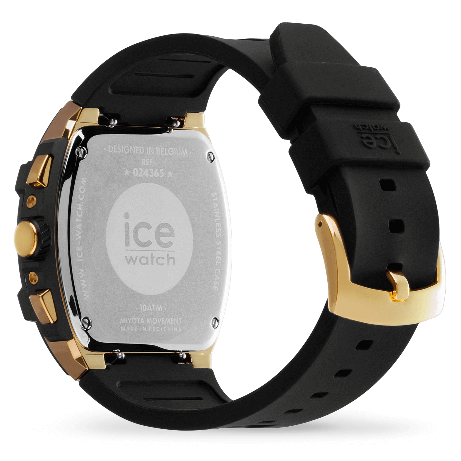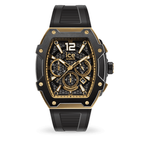 The ICE boliday - Black gold steel embodies elegance and simplicity. Its polished and shiny gold-tone steel tonneau case catches the light, showcasing a honeycomb dial where mechanical ingenuity is on full display. Equipped with a high-precision chronograph, this watch allows performance to be measured in real time with carefully arranged sub-dials. The matte black aluminum bezel and textured black silicone strap give this model a perfect balance between urban sophistication and functionality, making this watch an essential everyday ally. Waterproof to 10 ATM, this watch will accompany you everywhere, all the time!