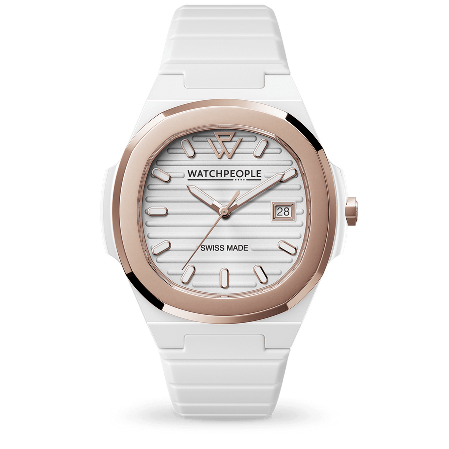 The WP7 Solid Sili White Gold combines the elegance of white with subtle gold accents, creating a watch