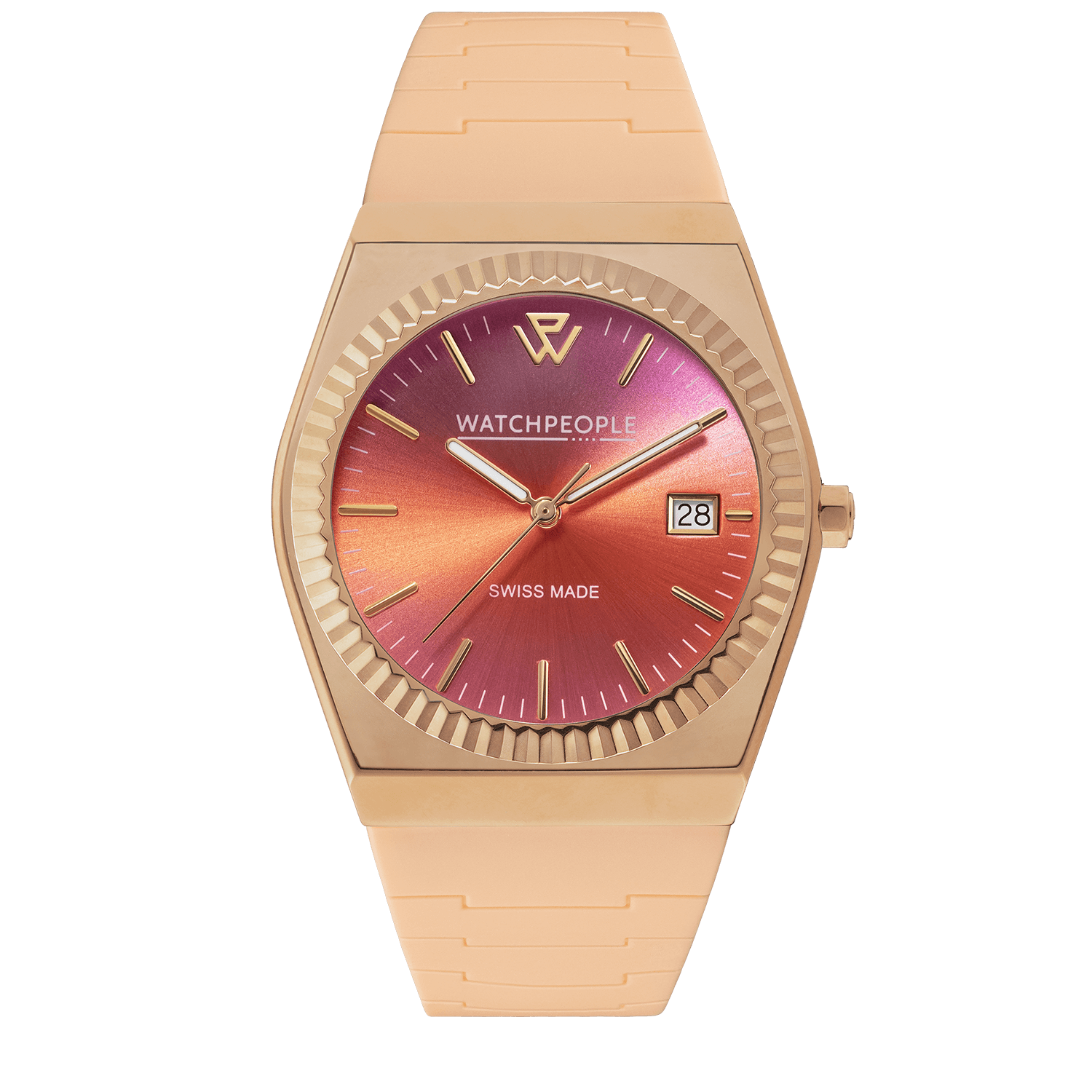 Osez une touche de folie dans votre sobriété avec la WP1 Sunset Peach. Fun et sans prises de tête grâce à son bracelet en silicone, elle reste sophistiquée en arborant un grand cadran rose-gold épuré. Laissez-vous transporter par ses couleurs de coucher de soleil. Cette montre Swiss Made incarne l’artisanat suisse d’excellence, tandis que son verre en saphir assure une protection inégalée contre les rayures, préservant ainsi sa beauté.