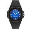 La WP4 Black blue radial lines offre un design élégant et moderne. Le bracelet en silicone noir assure